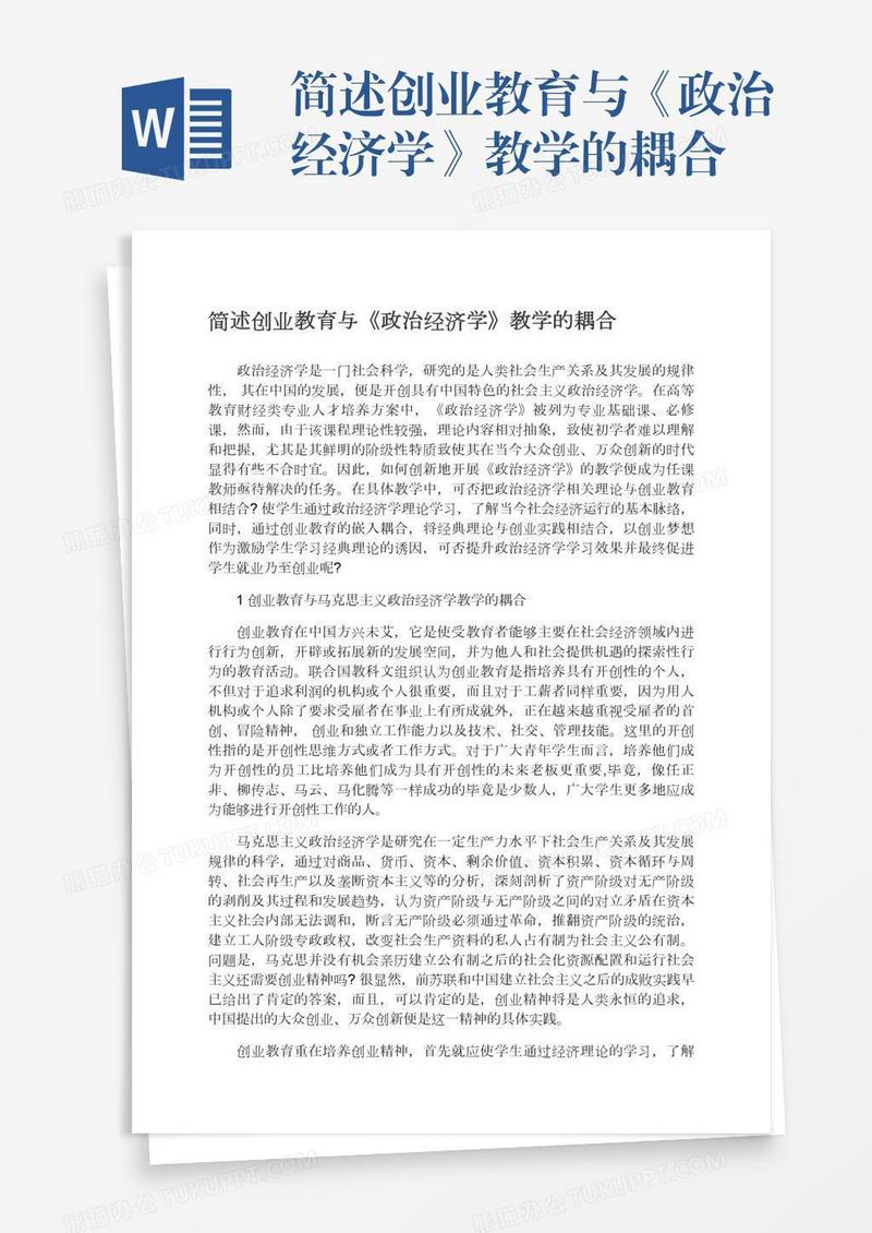 本作品为简述创业教育与《政治经济学》教学的耦合, 编号:wavqd4ndd9, 格式为 docx, 大小1 MB, 本作品下载后,先解压,解压之后用推荐软件 Word(2010) 打开, 然后进行编辑功能。