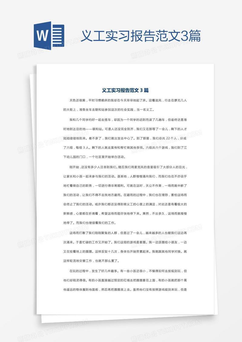 本作品为义工实习报告范文3篇, 编号:wavqdj2j29, 格式为 docx, 大小1 MB, 本作品下载后,先解压,解压之后用推荐软件 Word(2010) 打开, 然后进行编辑功能。