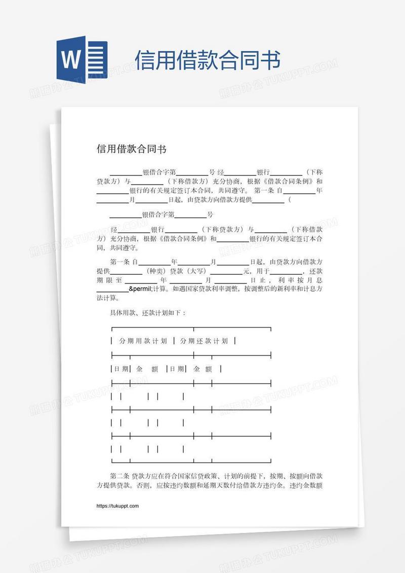 本作品为信用借款合同书, 编号:wavqdlk429, 格式为 docx, 大小1 MB, 本作品下载后,先解压,解压之后用推荐软件 Word(2010) 打开, 然后进行编辑功能。