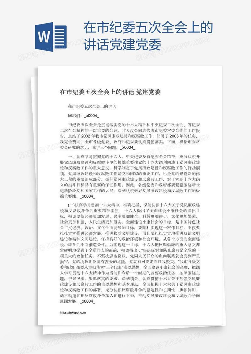 本作品为在市纪委五次全会上的讲话党建党委, 编号:wavqdn2vb9, 格式为 docx, 大小1 MB, 本作品下载后,先解压,解压之后用推荐软件 Word(2010) 打开, 然后进行编辑功能。