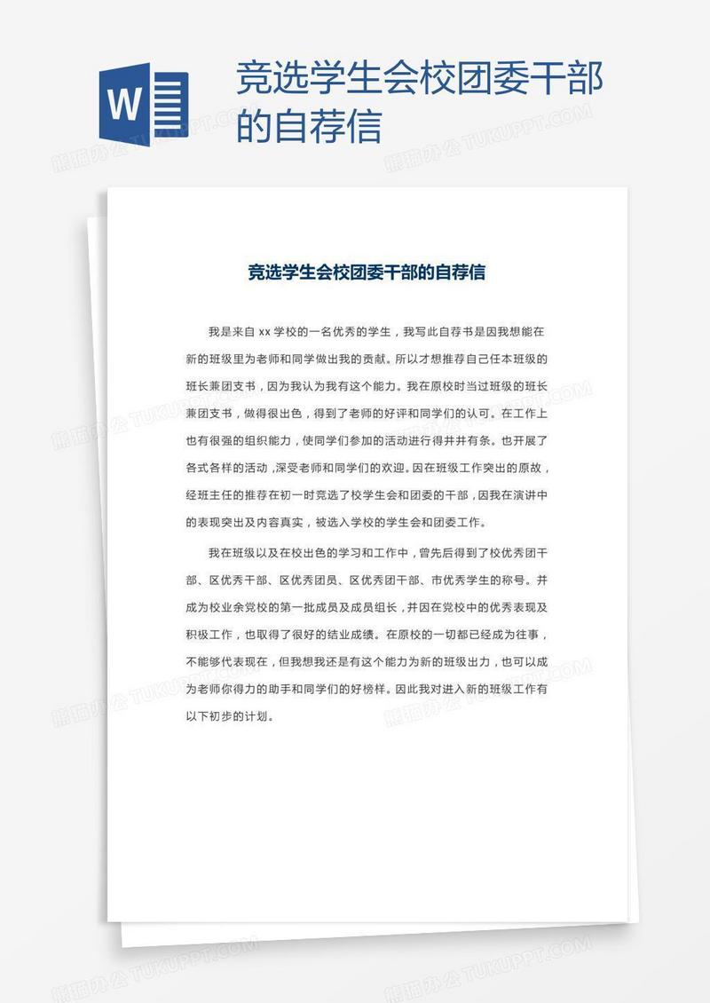 本作品为竞选学生会校团委干部的自荐信, 编号:wavqdnqkd9, 格式为 docx, 大小1 MB, 本作品下载后,先解压,解压之后用推荐软件 Word(2010) 打开, 然后进行编辑功能。