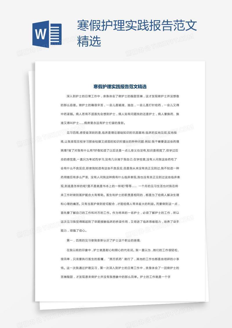 本作品为寒假护理实践报告范文精选, 编号:wavqdo6wd9, 格式为 doc, 大小1 MB, 本作品下载后,先解压,解压之后用推荐软件 Word(2010) 打开, 然后进行编辑功能。