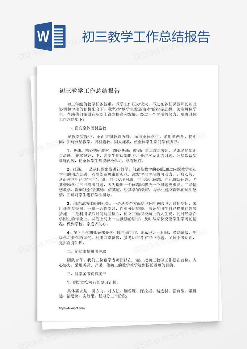 本作品为初三教学工作总结报告, 编号:wavqdw50d9, 格式为 docx, 大小1 MB, 本作品下载后,先解压,解压之后用推荐软件 Word(2010) 打开, 然后进行编辑功能。