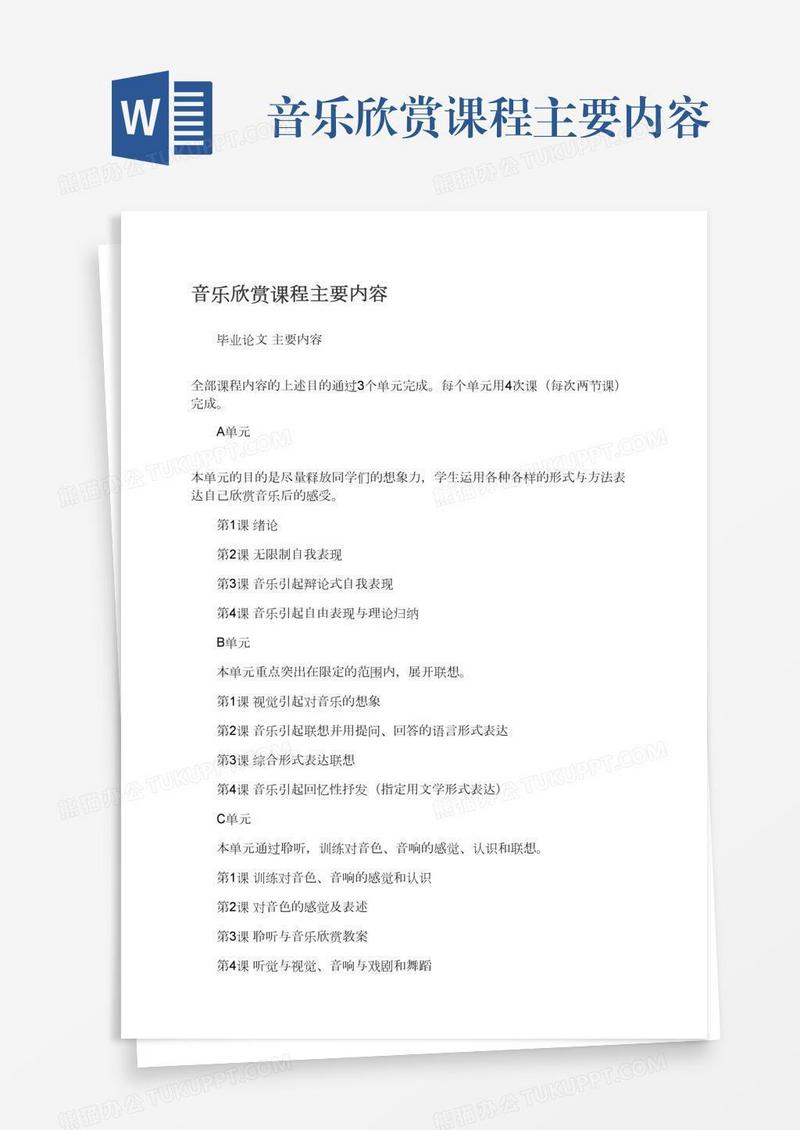 本作品为音乐欣赏课程主要内容, 编号:wavqo28dr9, 格式为 docx, 大小1 MB, 本作品下载后,先解压,解压之后用推荐软件 Word(2010) 打开, 然后进行编辑功能。
