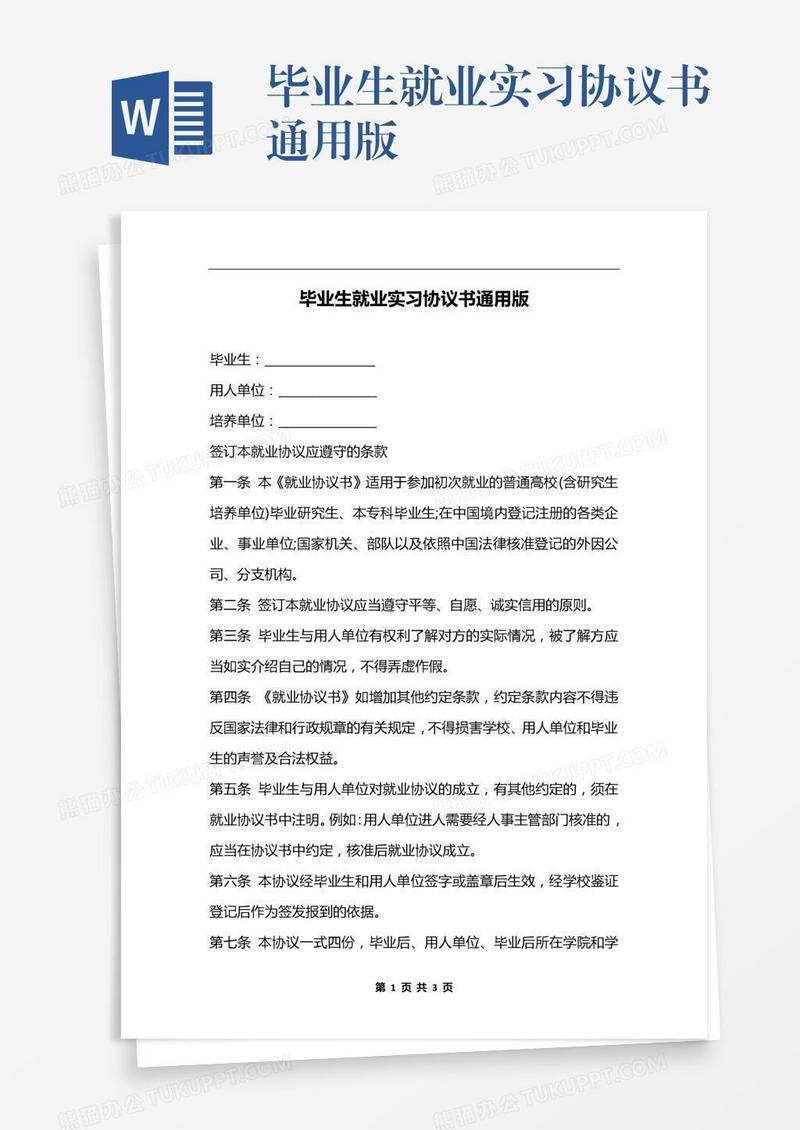 本作品为毕业生就业实习协议书通用版, 编号:wavqolo2b9, 格式为 docx, 大小1 MB, 本作品下载后,先解压,解压之后用推荐软件 Word(2010) 打开, 然后进行编辑功能。