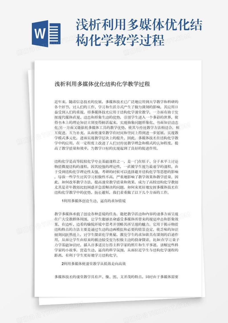 本作品为浅析利用多媒体优化结构化学教学过程, 编号:wavqop8r29, 格式为 docx, 大小1 MB, 本作品下载后,先解压,解压之后用推荐软件 Word(2010) 打开, 然后进行编辑功能。