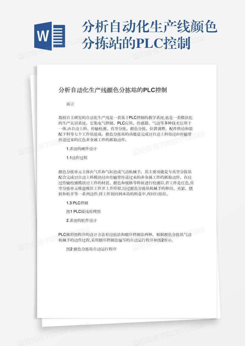 本作品为分析自动化生产线颜色分拣站的PLC控制, 编号:wavqopjk29, 格式为 docx, 大小1 MB, 本作品下载后,先解压,解压之后用推荐软件 Word(2010) 打开, 然后进行编辑功能。