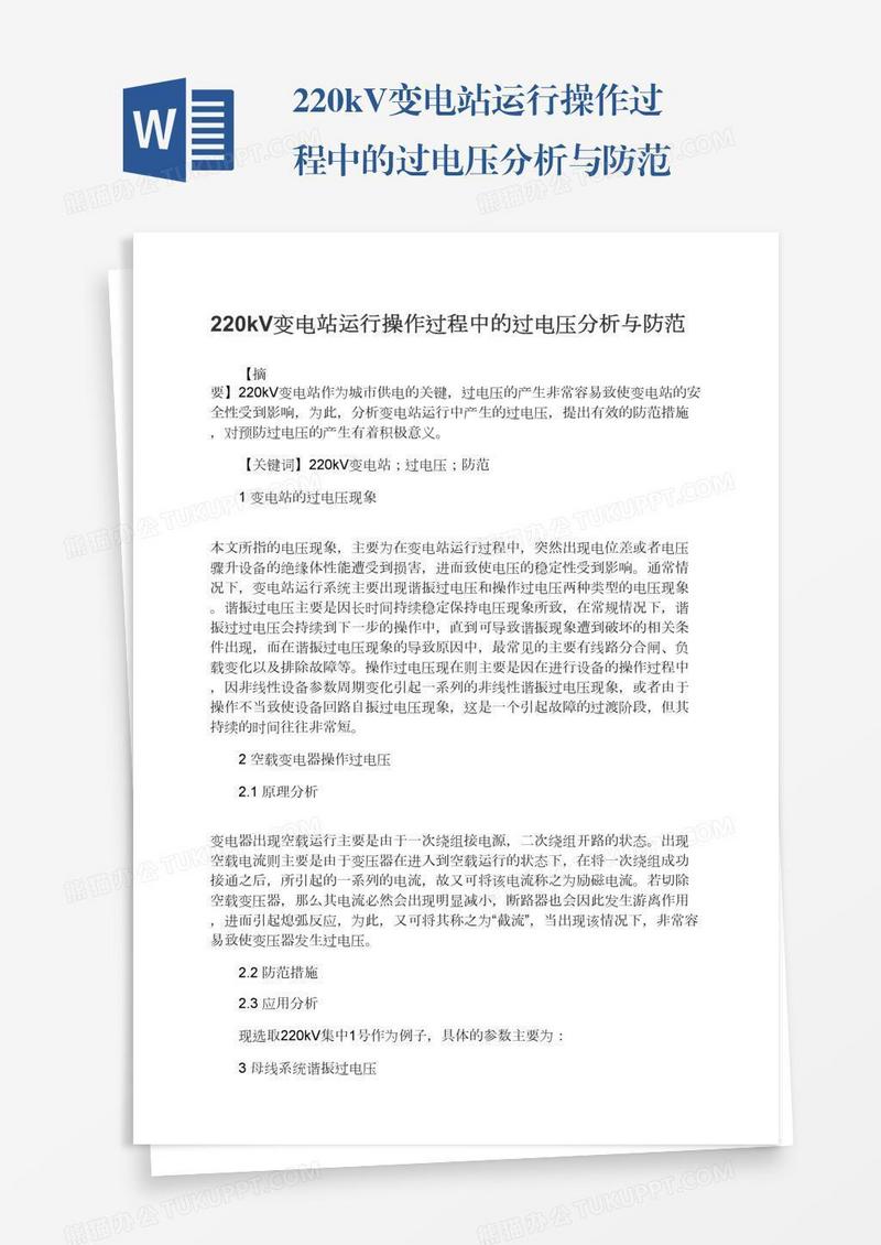 本作品为220kV变电站运行操作过程中的过电压分析与防范, 编号:wavqopqmw9, 格式为 docx, 大小1 MB, 本作品下载后,先解压,解压之后用推荐软件 Word(2010) 打开, 然后进行编辑功能。