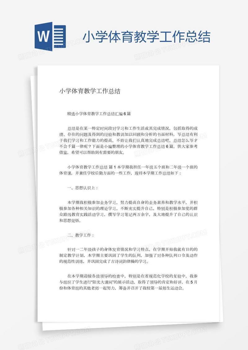 本作品为小学体育教学工作总结, 编号:wavqp4kb79, 格式为 docx, 大小1 MB, 本作品下载后,先解压,解压之后用推荐软件 Word(2010) 打开, 然后进行编辑功能。