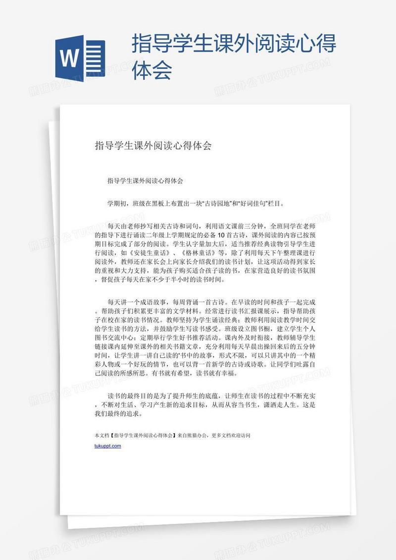 本作品为指导学生课外阅读心得体会, 编号:wavqp5pm29, 格式为 docx, 大小1 MB, 本作品下载后,先解压,解压之后用推荐软件 Word(2010) 打开, 然后进行编辑功能。